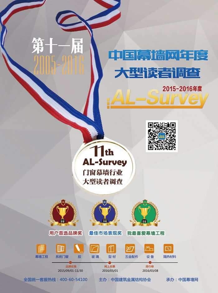 ????? AL”是鋁門窗幕墻委員會aluminum的英文開頭首母,“AL”還代表鋁的元素符號,同時,“AL”是中國幕墻網(wǎng)域名ALwindoor的簡寫,“Survey”則代表調(diào)查